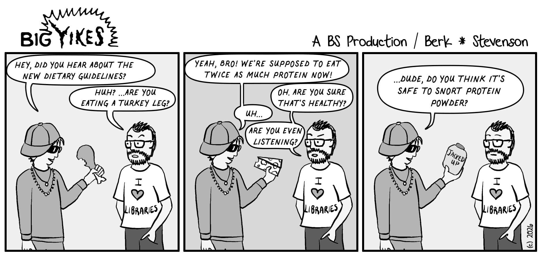 previousBig Yikes #195Big Yikes #196by aquafortisJanuary 20, 2026January 20, 2026the new food groups are meat, roadkill, full-fat cheese, and protein powderi also put the cartoon hereLeave a Reply Cancel replyYour email address will not be published. Required fields are marked *Name * Email * Website Comment * Save my name, email, and website in this browser for the next time I comment. Enter solution * Δ
